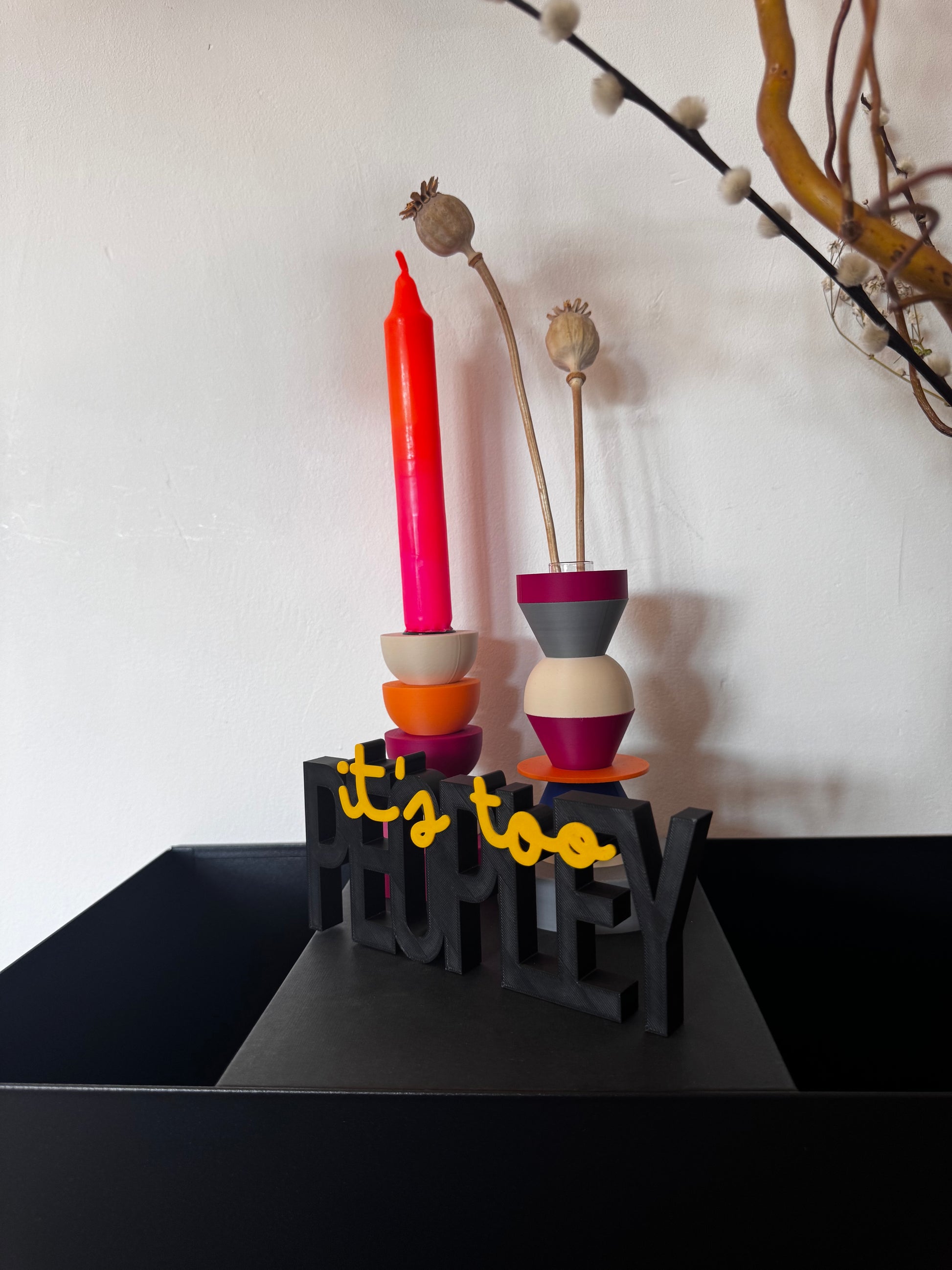 Wir entwerfen die Schriftzüge am Rechner, erstellen die Dateien und fertigen die Dekoschriftzüge anschließend mit unseren 3D Druckern aus biologisch abbaubarem PLA.